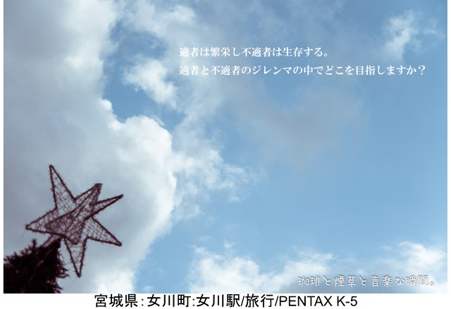 故に自分は適応しようとするもほどほどに。”不適者”でいる努力も必要だと思うしそれもしてるわけです。