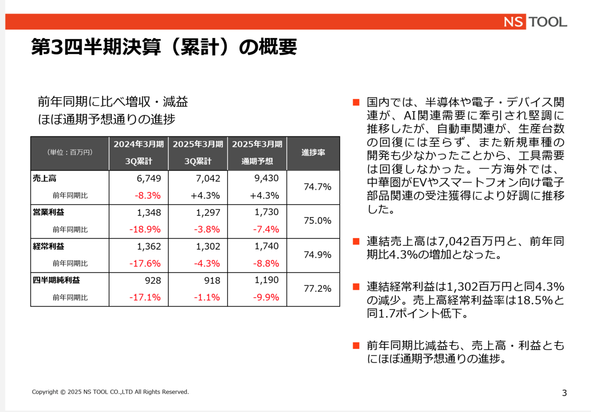 目先3Qは増収ですね。もっとも順調でもなさそうで他業種の動向に左右されるシクリカル色はありそうです。