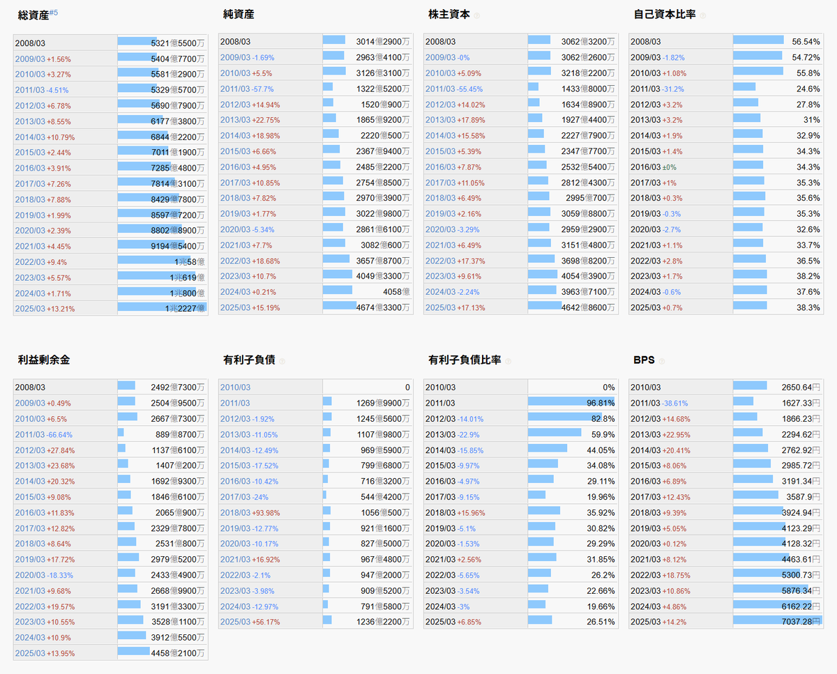 | 総資産(億) | 自己資本(億) | 自己資本比率(%) | 配当利回り(%) | 配当性向 |