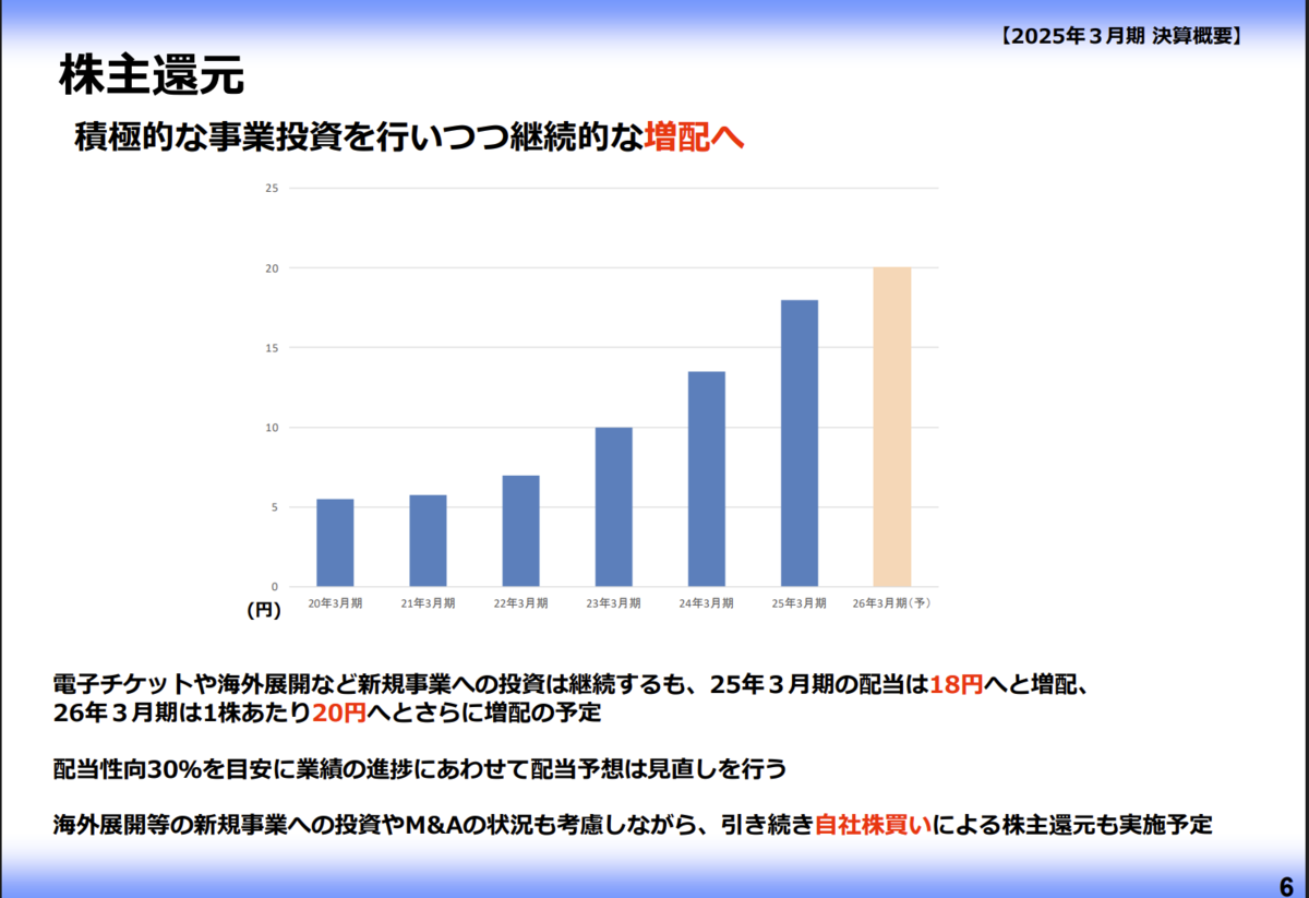 株主還元・資本政策:株式分割(1→2、効力発生日2026/1/1)と、分割考慮後でも増配の形(実質増配の説明あり)。自己株取得も継続している。